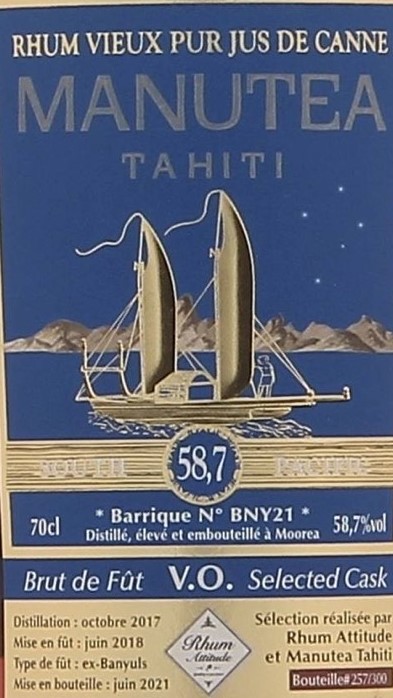Manutea VO “ex-Banyuls” (58,7%): This is a Rhum Attitude selection, a cask strength single cask Rum with a Bayuls finish. Nose: Clearly red grapes, plum juice, Rum soaked raisins, cherries, chocolate and a few herbal notes. Very interesting, even though this is extremely cask driven. The problem is that we only have no comparisons and don’t know what the raw distillate tastes like. Palate: Ultra sweet with the Banyuls (yeah…), grapes, sugar, mint, rather dry wood despite all the sweetness, some sulphate, plums and no matter how you twist and turn it, more and more fortified wine. It’s not bad at all, but there’s simply not much of the distillate left I think. By the way, the alcohol is integrated super-well! Finish: Not very long with those sweet Banyul and the dry wood notes at the same time. A few herbs are in the mix as well. So the cask has taken over the Rum entirely, but at this point (young distillery, no seriously aged expressions available) I don’t mind it.