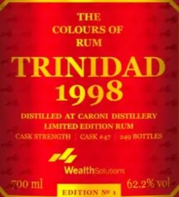 The Colours of Rum Caroni 1998 23YO (62,2%): Same base data as the Wu Dram Clan but it should be a different barrel. Nose: Clearly lighter, cleaner and more floral in direct comparison. We get fewer of the notes I tend to describe as dirty and instead even something close to rose or jasmin petals. This is still obviously a Caroni, mind you, but this one does stick out in a way. With more time in the glass, engine and olive oil come out more and more, while I also get associations of green tea and Indian fig. Palate: An almost silky texture, with lots of caramel, cocoa and milk chocolate, pecan nut and tarry whipped cream. With the second sip more oak, oils and that green tea again. Finish: Quite long, with more green tea, aloe vera, olive oil, oak and caramel. This should be a good Rum to introduce someone to the world of Caroni, I think. For my taste, it is almost a little bit too balanced.